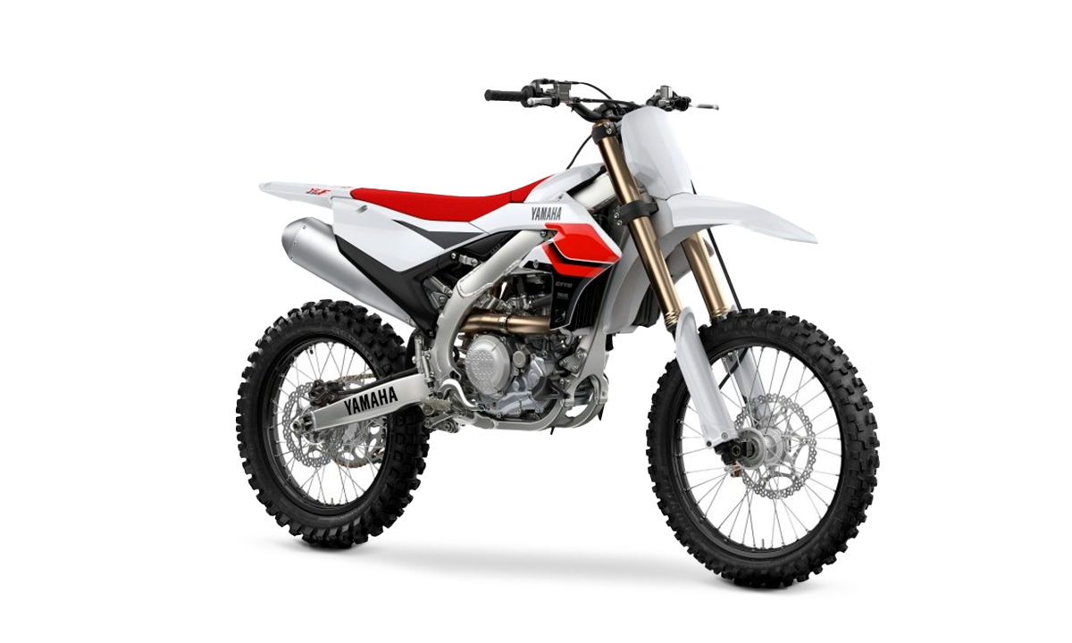 La icónica decoración en blanco y rojo de la Edición 70.° Aniversario se combina con la carrocería agresiva de la YZ450F para lograr una apariencia sorprendente.