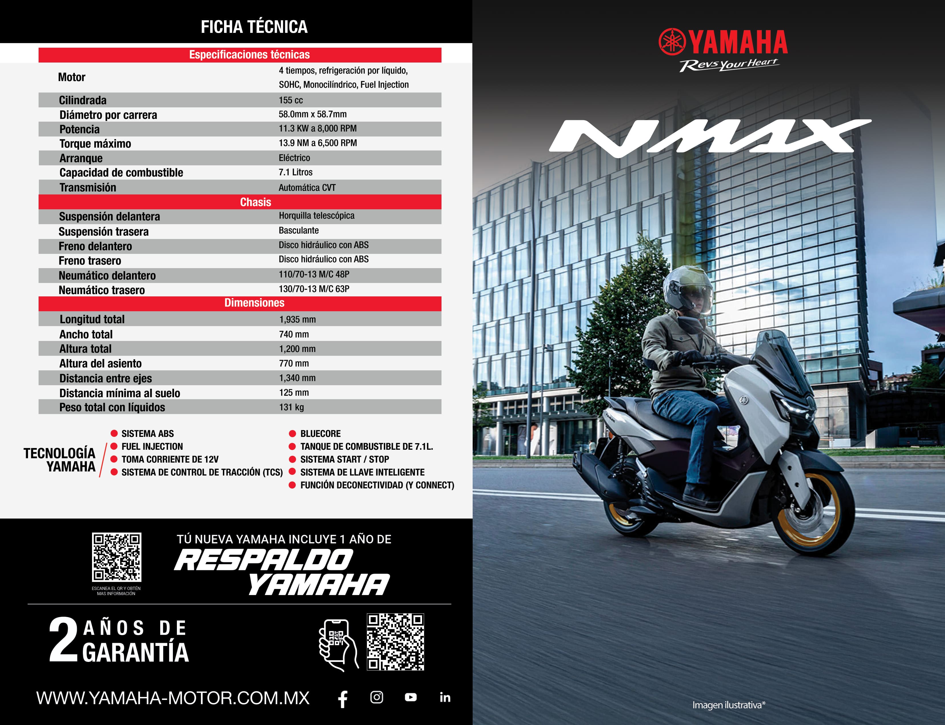 La NMAX 2026 redefine el concepto de movilidad con una fusión perfecta de prestigio y tecnología innovadora. Su diseño audaz y su rendimiento superior garantizan una experiencia de conducción emocionante y vanguardista.