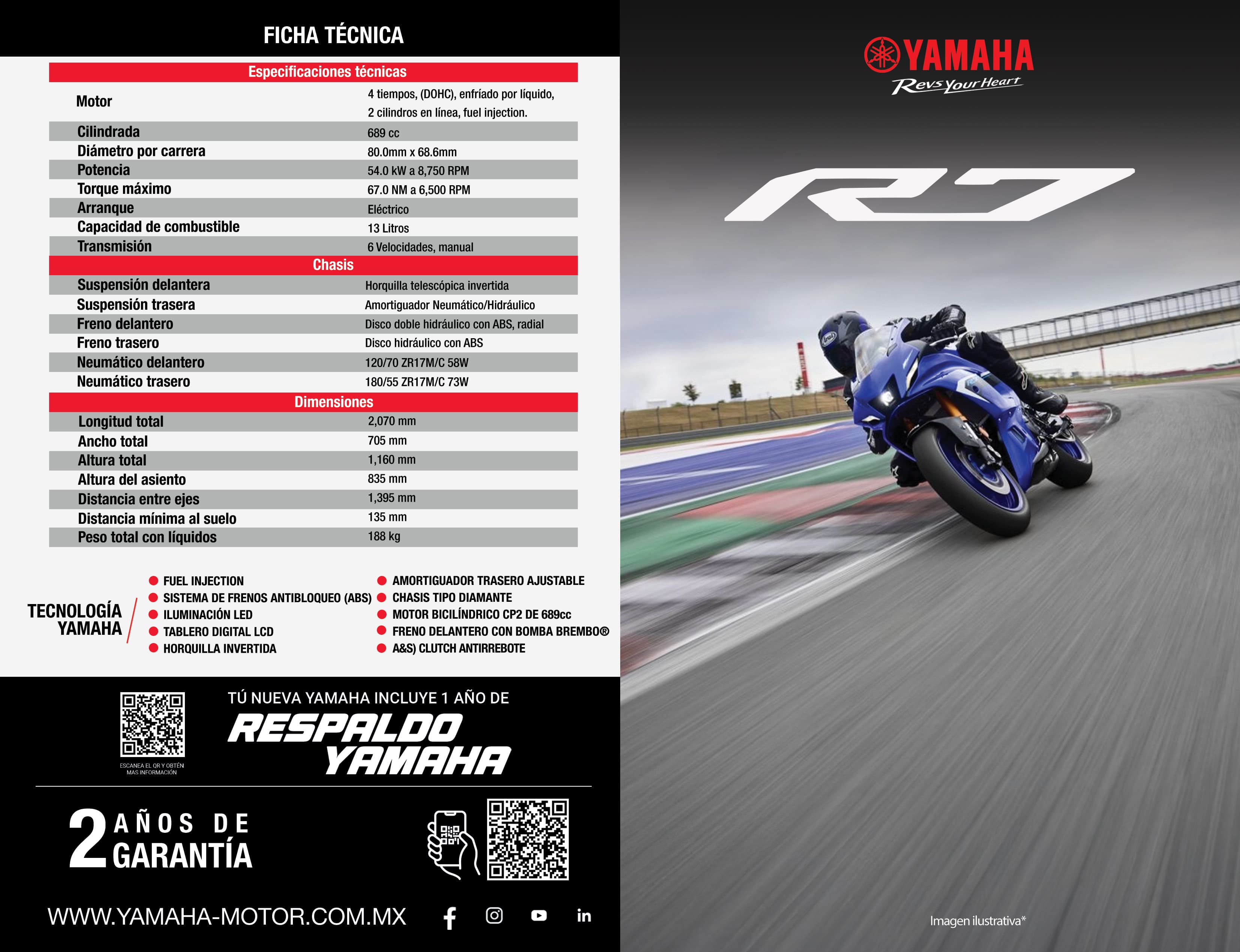El probado motor bicilíndrico en paralelo DOHC de 689 cc con inyección de combustible de Yamaha ofrece una potencia y un rendimiento excepcionales en todo el rango de revoluciones, brindando una experiencia de conducción emocionante y auténticamente Supersport. Su cigüeñal a 270° proporciona un torque lineal para una aceleración impactante y mínimas vibraciones.
